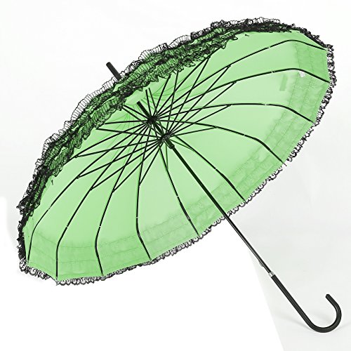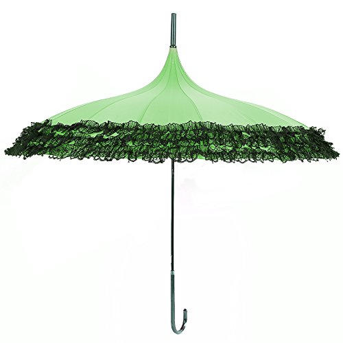 -. Title : 39 Inch Solid Color Straight Shaft Rian Umbrella Pagoda Parasol Lace Wedding Umbrella Bridal Umbrella - Elegant & Durable, Anti-UV / Waterproof / Windproof-U Handle-PG Fabric (Green)