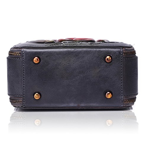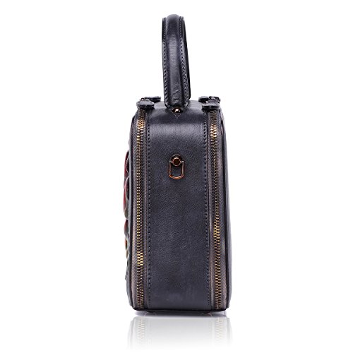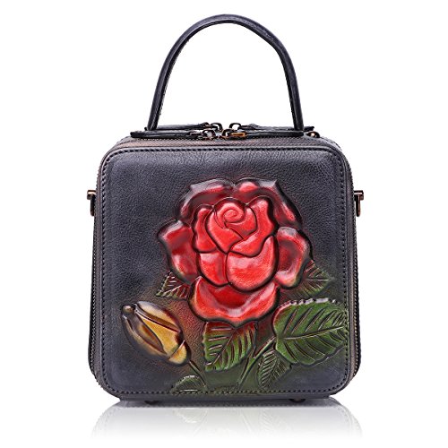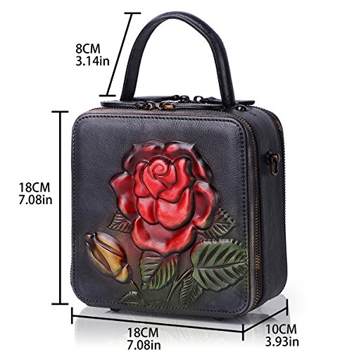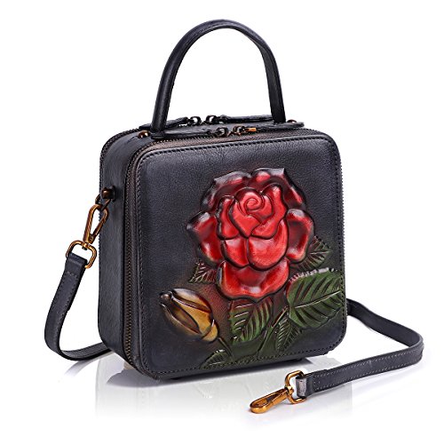 APHISON Shoulder Tote Zipper Purse Embossed Flowers Handbags for Women Genuine Leather Top-handle Satchel Bags Ladies 6617