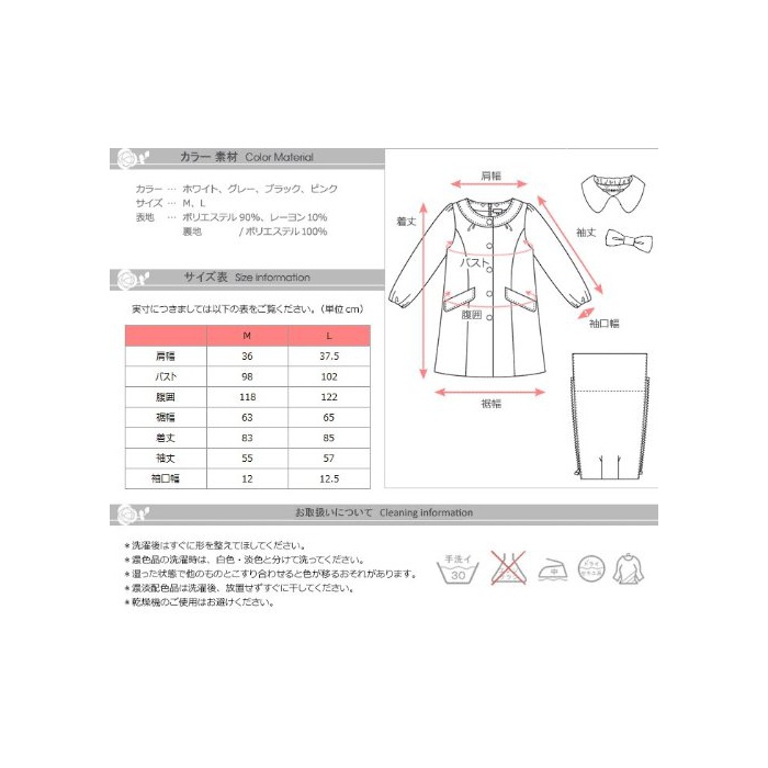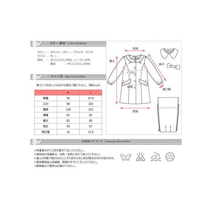 【금2WAY】옷깃과 리본은 버튼에 떼내어 이 생기는 때문에,달콤함을 억제한 노 컬러 코트로도 변신.