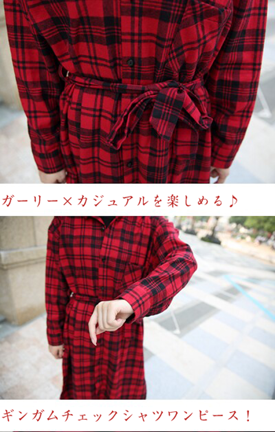 | ガーリー×カジュアルを楽しめる?ギンガムチェックシャツワンピース!チェック柄でガーリー感を楽しみたいなら愛らしさをUPしてくれるギンガムチェック柄がおすすめ?シャツタイプのシルエットでカジュアル度もオシャレに演出してくれます。ウエスト部分もヒモで調節できるので細く魅せることができるのも高ポイント。1枚着るだけでしっかりコーデが完成するのでコーデに悩まずメイクできます。 | |