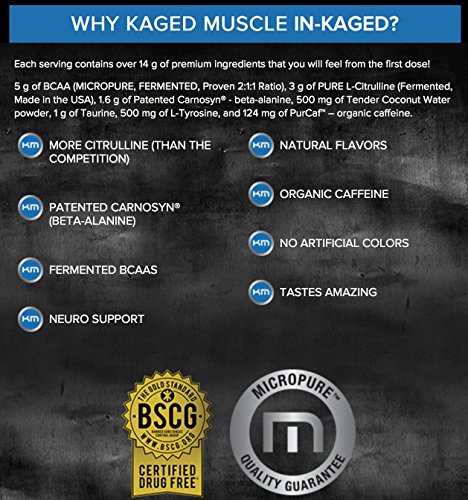 -. Binding : Health and Beauty -. Brand : Kaged Muscle -. EAN : 0094393450627 -. Feature : A great tasting premium hydration and endurance intra-workout drink that is formulated to supply electrolytes and battle fatigue, while enhancing mental clarity during training / Micropure BCAAs are non-GMO and microencapsulated by a patented technology that maximizes absorption and solubility / L-Citrulline delivers the purest form of natural nitric oxide support available and starts working from the very first dose / Carnosyn Beta-Alanine provides a bio-friendly form of beta-alanine, a naturally occurring beta amino acid essential for the synthesis of muscle carnosine / Each serving contains: 5 g of BCAA, 3 grams of Pure L-Citrulline, 1.6 g of patented Carnosyn Beta-Alanine, 500 mg of Tender Coconut Water powder, 1 g of Taurine, 500 mg of L-Tyrosine, and 124 mg of PurCaf (organic caffeine) -. IsAdultProduct : 0 -. Label : Kaged Muscle -. Manufacturer : Kaged Muscle -. MPN : 094393450627 -. PackageQuantity : 1 -. PartNumber : 094393450627 -. ProductGroup : Health and Beauty -. ProductTypeName : HEALTH_PERSONAL_CARE -. Publisher : Kaged Muscle -. Size : 20 Servings -. Studio : Kaged Muscle -. Title : Kaged Muscle In-Kaged Premium BCAA Intra-Workout Powder, 338 Grams, 20 Servings, Cherry Lemonade -. UPC : 094393450627