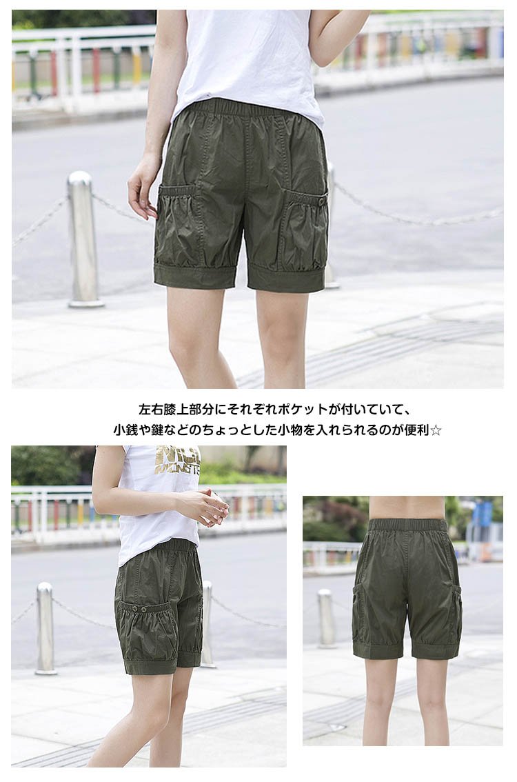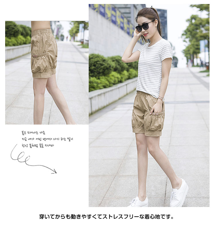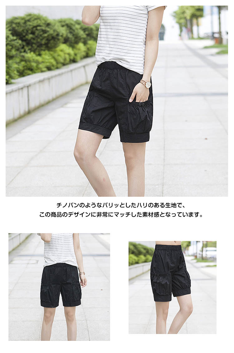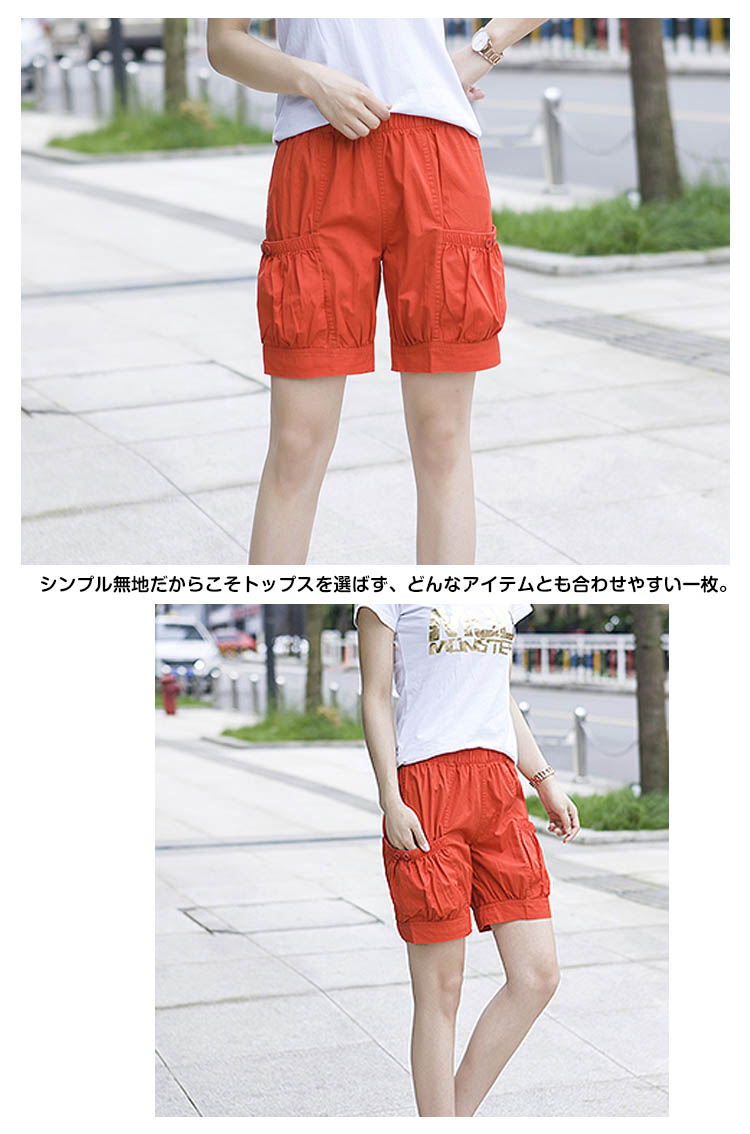 | いろんなスタイルが楽しめる人気のハーフパンツ!!穿いてからも動きやすくてストレスフリーな着心地です。チノパンのようなパリッとしたハリのある生地で、この商品のデザインに非常にマッチした素材感となっています。左右膝上部分にそれぞれポケットが付いていて、小銭や鍵などのちょっとした小物を入れられるのが便利☆シンプル無地だからこそトップスを選ばず、どんなアイテムとも合わせやすい一枚。 | |