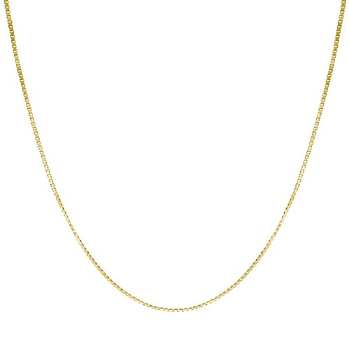 -. Title : 14K Solid Gold 0.7mm Box Chain Necklace, 16" - 30"