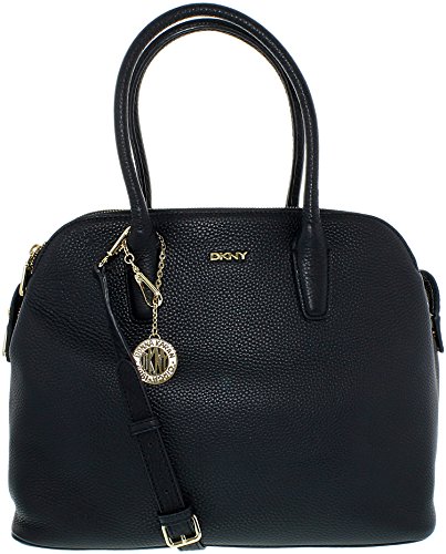 Keep a classic timeless look alive with this elegant and smart satchel by Dkny The leather will go with an array of outfits keeping you looking your best and the utmost of fashionable! This bag measures 14 inches long 55 inches wide and 11 inches deep with 4 interior pockets so you will have plenty of room for all of your accessories! Other features of this bag include 2 exterior pockets