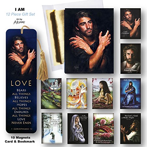 I Am, 12 Piece Gift with Art by Akiane Kramarik of Jesus, age 26, includes Card, Bookmark and 10 Fridge Magnets