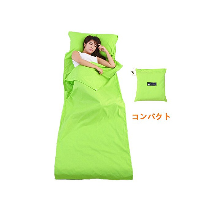 원본상품명: VIOMO ?袋インナ? シュラフ コンパクト 封筒型 綿製 ?量 ?納袋付き 災害?策 車中泊 丸洗い可能 (グリ?ン, 1人用)