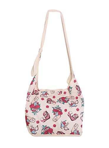 Curiouser and curiouser! This adorable Alice in Wonderland bag from Loungefly adds tattoo edge to Disney magic with Alice, the Cheshire Cat and the White Rabbit like you're never seen them before. It might as well have a tag saying "Wear Me" because... well, you'll want to. 16 1/2" x 11"