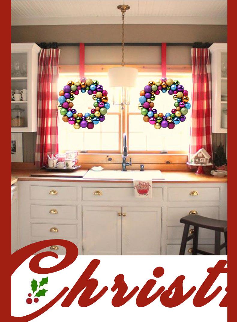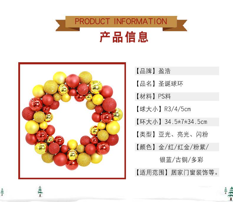 盈浩34cm圣诞球环装饰品圣诞节家居店面装饰用品花环吊件挂饰布置