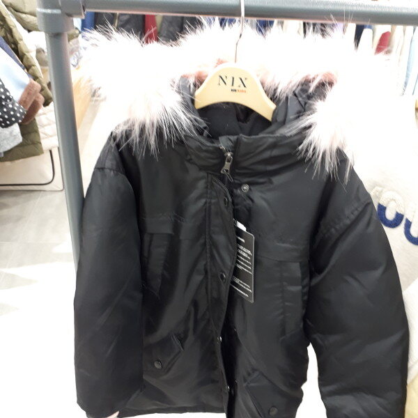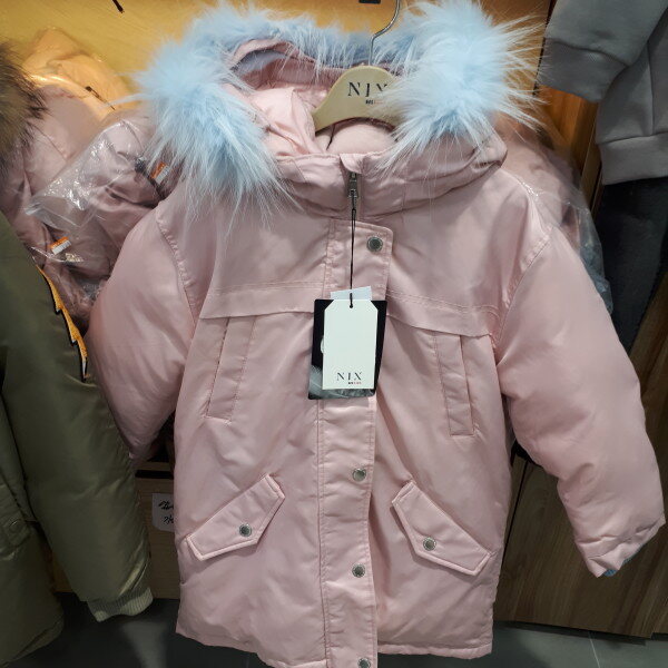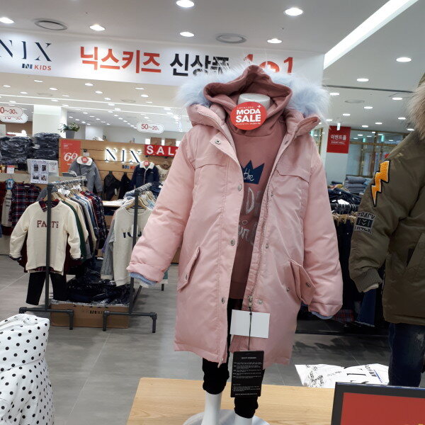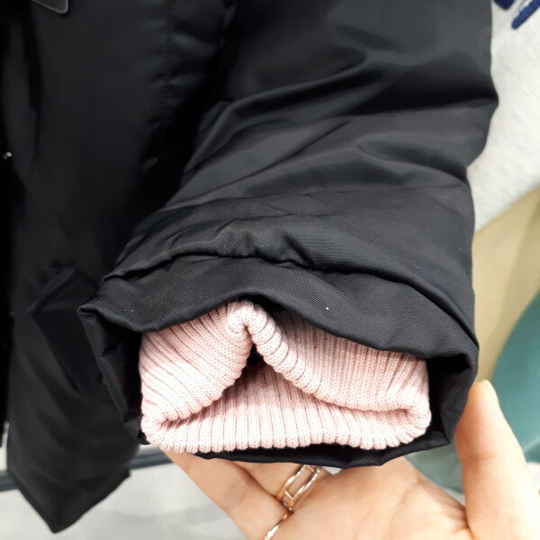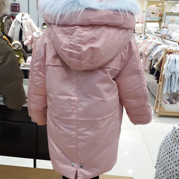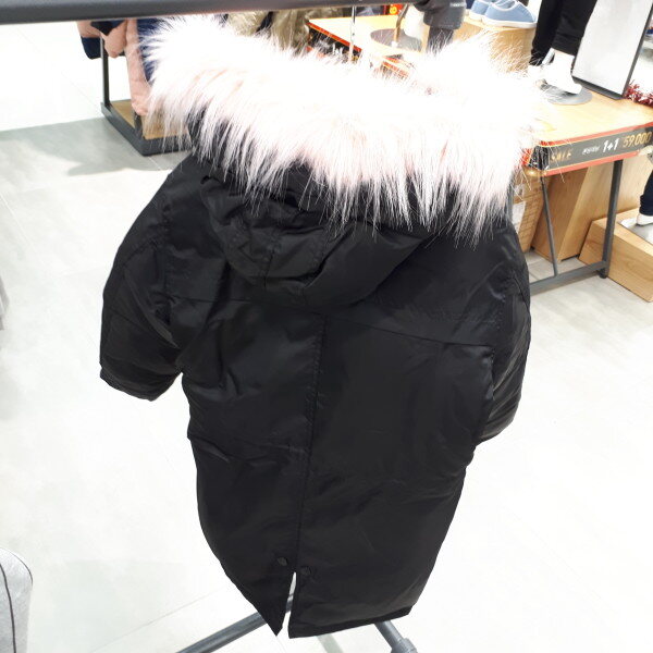 덕다운 충전재를 사용한 여아 전용 롱 다운점퍼,칼라포인트 된 페이크 털 트리밍한 스타일의 아우터
