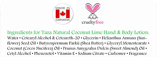 -. Title : Premium Taza Natural Coconut Lime Hand & Body Lotion, 16 fl oz (473 ml) ♦ Leaves Your Skin Smooth, Soft & Glowing ♦ Contains: Sunflower Seed Oil, Shea Butter, Coconut Oil, Sweet Almond Oil