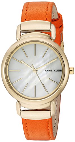 Anne Klein Women's AK/2752MPOR Gold-Tone and Orange Leather Strap Watch
