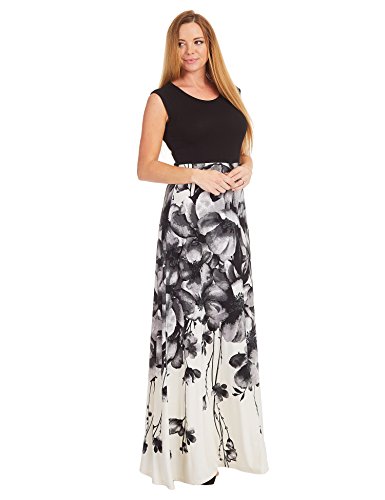 Womens Print Contrast Sleeveless Empire Line Maxi Dress