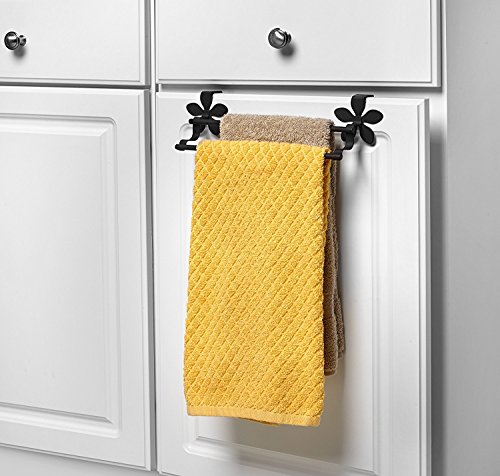 Spectrum Diversified Flower Double Towel Bar, Over the Cabinet Door, Black