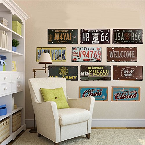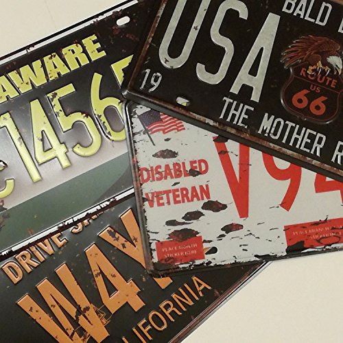 -. Feature : アメリカンテイストのかっこいいヴィンテージ風のナンバープレート4枚セットです。 / お部屋が一気に男前インテリアのおしゃれ空間に!カフェやバー等の飲食店、アパレルなどの店舗にもお勧めです。 / サイズ(約):30cm×15cm ※ただのプリントでなく、立体感が出るよう浮き出し加工を施しております。(一部平面もあり) / デラウェア、カリフォルニア、アラバマ、ルート66の4枚です。 / 四方に穴が開いていますので、ピンで壁に掛けたり、紐でつるしたり 立てかけたりとアイデアとセンスでお好みの空間にデコレーションしていただけます。