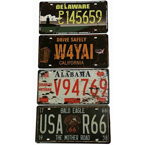 -. Title : Airyus アメリカン ナンバープレート 4枚 セット ブリキ看板 ライセンス プレート 壁掛け レトロ アンティーク ヴィンテージ インテリア 雑貨
