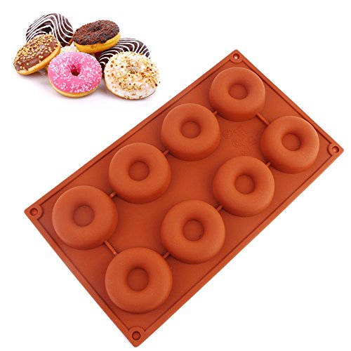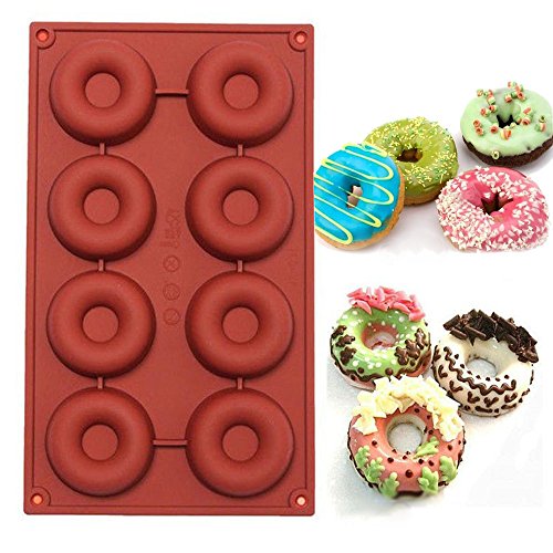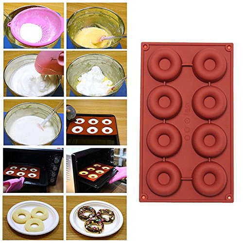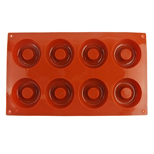 SQDeal 1 pcs 8 Cavity Silicone mini Donut Pan Muffin Cups Cake Baking Ring Biscuit Mold(Brick Red)