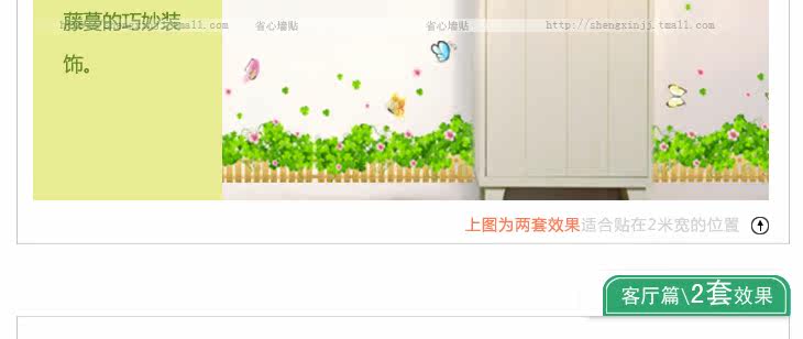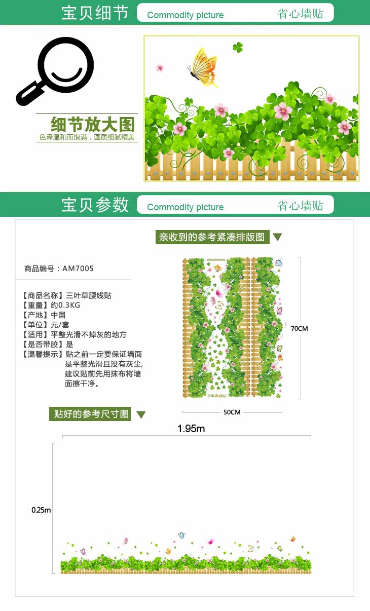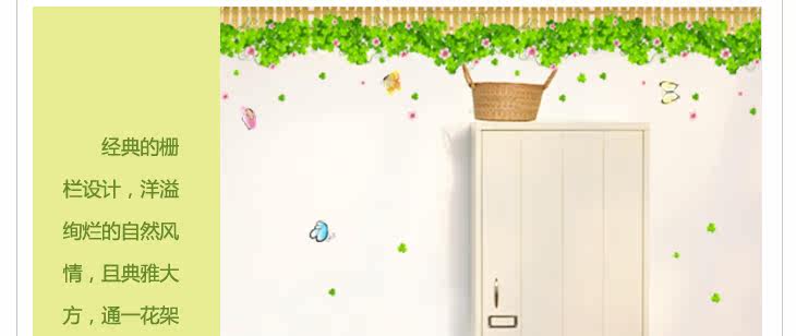 可移除墙贴纸装饰画客厅卧室沙发背景吊顶贴画 三叶草 墙角腰线贴