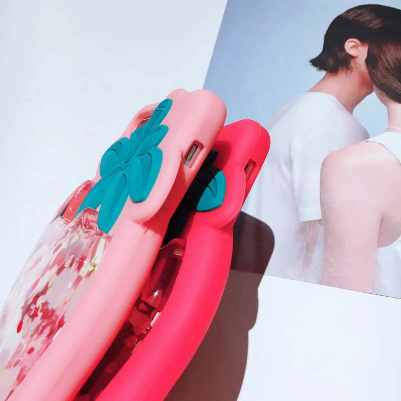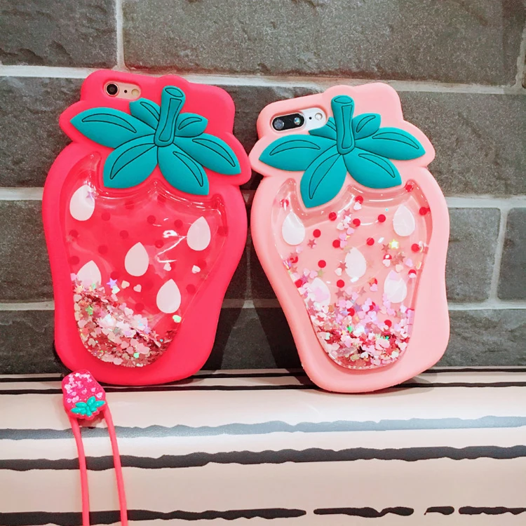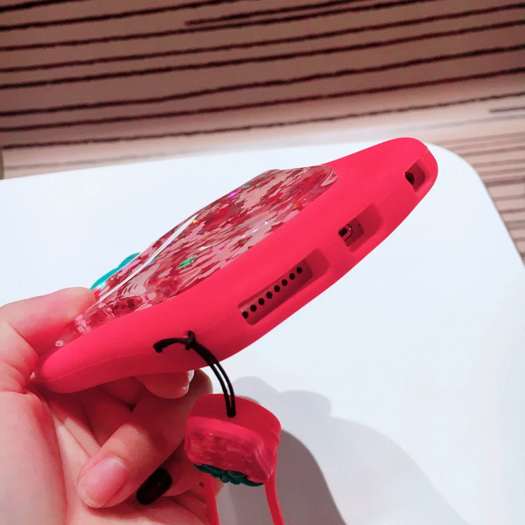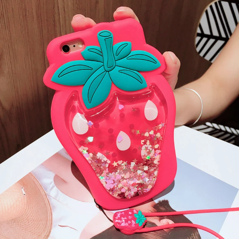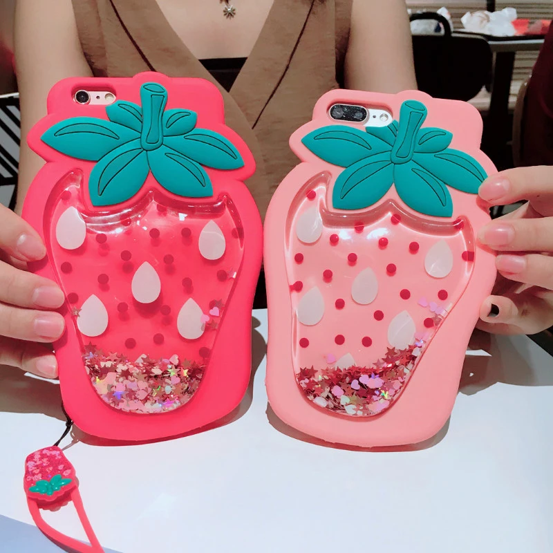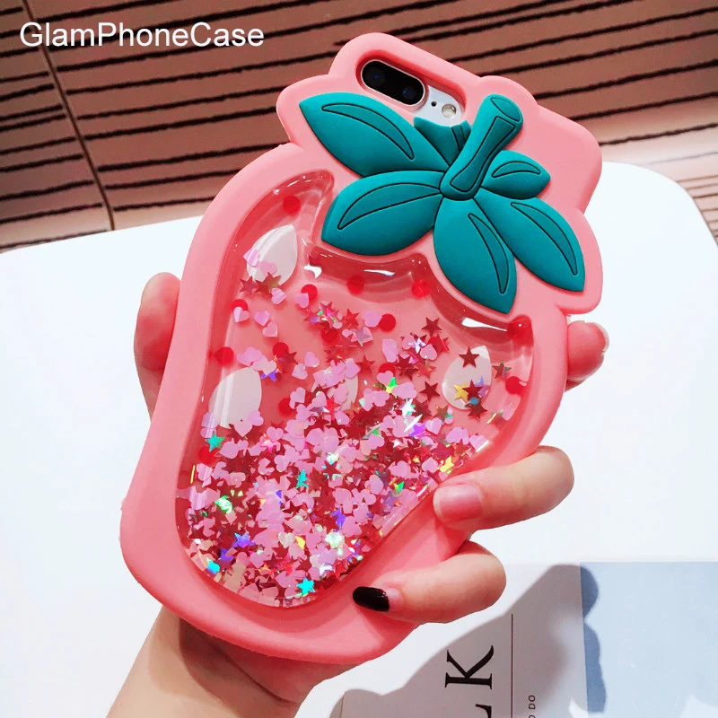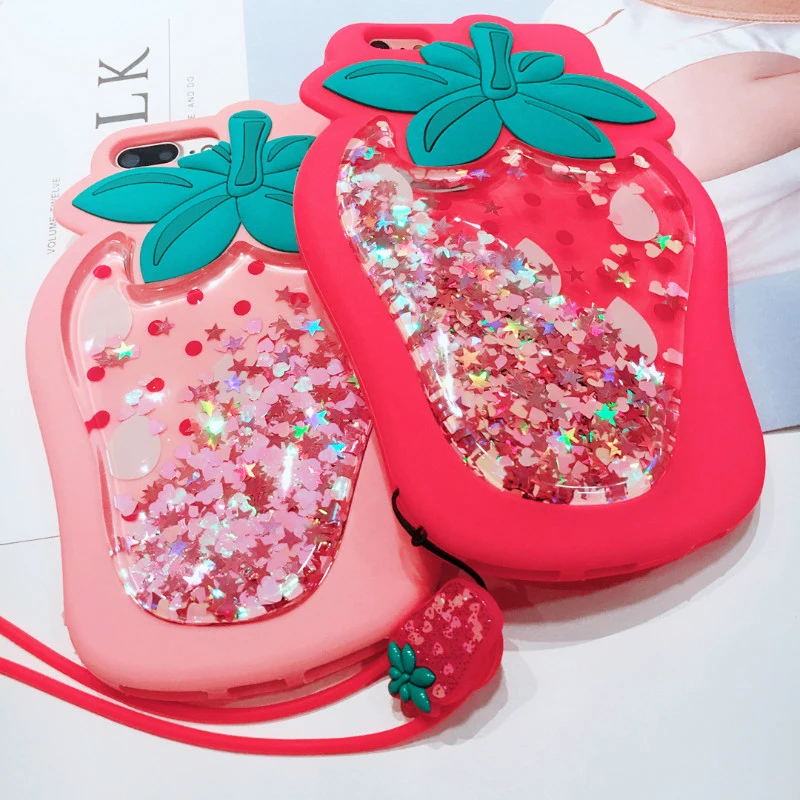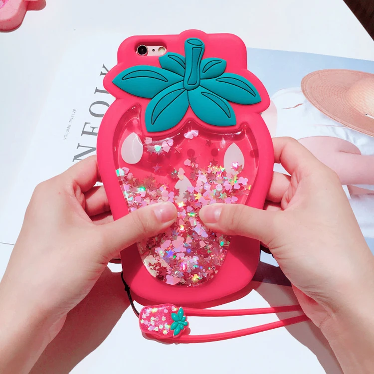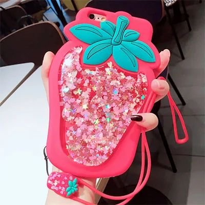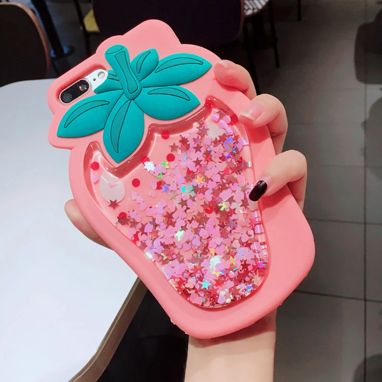 Features:3D Strawberry Liquid Quicksand Transparent Glitter Case