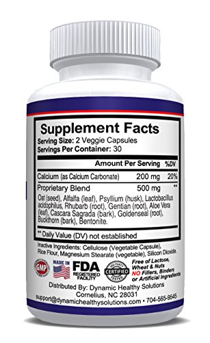 Natural Constipation Relief - Colon Detox and Cleanser - 15 Day Formula - 60 Vegetarian Capsules