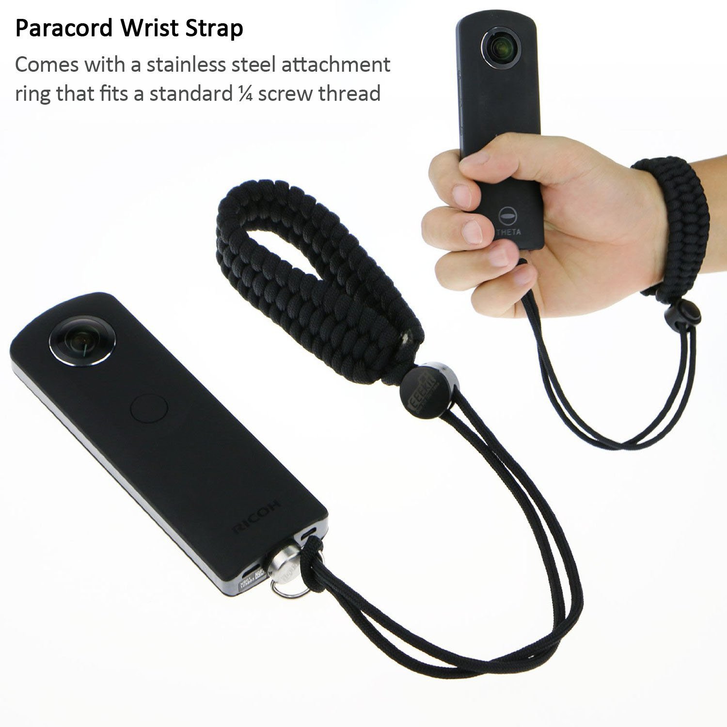 The wrist strap comes with a stainless steel attachment ring that fits a standard ¼ screw thread. 1 recommendation to the be attached to either the camera itself or an attached pole mount kit Includes: 1 x Wrist Strap, 1 x Silicone Case for Ricoh