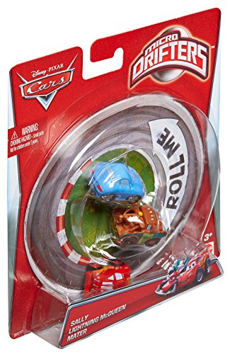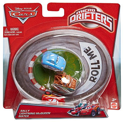 -. Binding : Toy -. Brand : Mattel -. EAN : 0746775191139 -. Feature : Inspired by the hit Disney/Pixar's animated films, Cars and Cars 2 / Kids will love reenacting their favorite scenes from the movies / Small-scale vehicles with ball-bearing technology / These cars can race, drift and swarm / Kids will want to collect them all -. IsAdultProduct : 0 -. Label : Mattel -. Manufacturer : Mattel -. Model : Y1126 -. MPN : Y1126 -. PackageQuantity : 1 -. PartNumber : Y1126 -. ProductGroup : Toy -. ProductTypeName : TOYS_AND_GAMES -. Publisher : Mattel -. Studio : Mattel -. Title : Cars Micro Drifters Sally, Lightning McQueen and Mater Toy Vehicle, 3-Pack -. UPC : 746775191139 -. Warranty : 1 year warranty against manufacturer defects