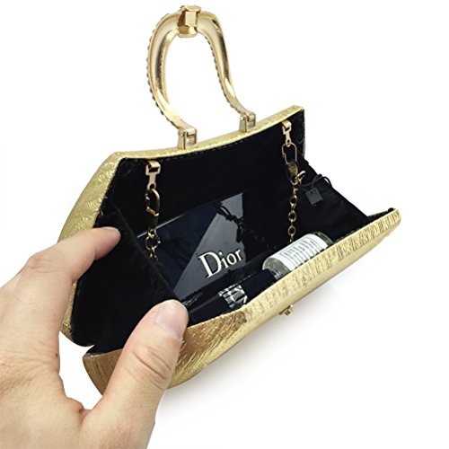 -. Feature : Size:18*10*6 cm/7"*4"*2.4",suit to i phone 6 s ,chains drop in:7" and 21" / Shinning tree bark venis surface and crystal U shape snap clasp closure / This is mini bag,but it's good enough fit for 4.7" cell phone,keys,credit card.little cash / 3 in 1 bag(evening bag,handbag,cross-body bag),freely used for parties,wedding,night dinner / 100% Brand new and high quality,no odors,refund guaranteed from Taidaf