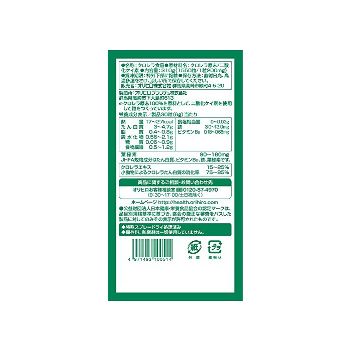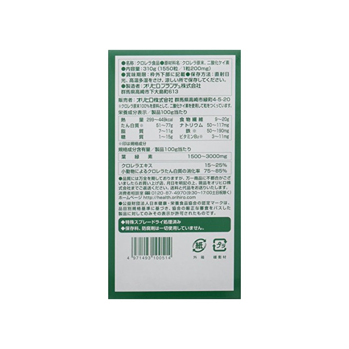 원본상품명: オリヒロ クロレラ100(細胞壁破?クロレラ配合) 1550粒