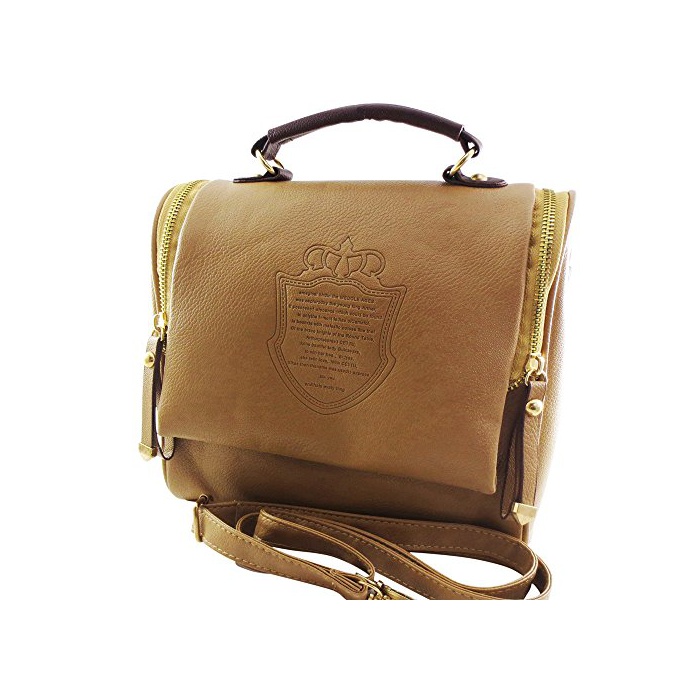 원본상품명: [モノジ] MONOZY レディス 2WAY クラッシック 英風 クラウン ハンドバッグ ショルダバッグ ジッパ 斜めがけ バッグ (キャメル)
