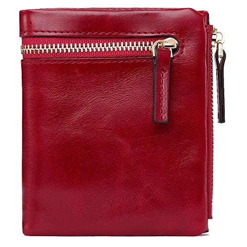 Genuine Leather Oil Wax Short Lady Wallet Zipper Coin Purse