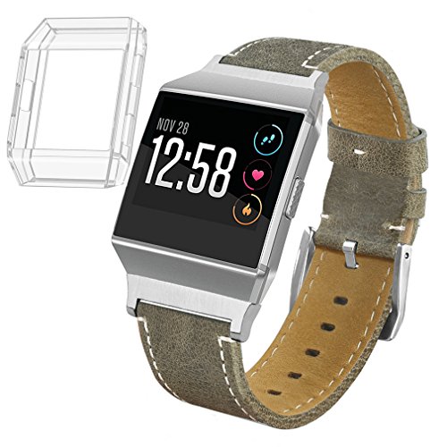 -. Title : Fitbit Ionic Band Leather with Case Genuine Leather Replacement Wrist Band with Metal Closure Clasp for Fitbit Ionic Smartwatch Fitness Tracker by Olytop