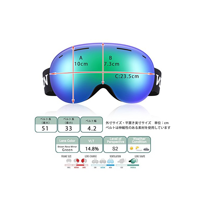 원본상품명: VAYLLEN スキ?ゴ?グル スノ?ボ?ゴ?グル 曇り止め スノ?ゴ?グル ミラレンズ メンズ レディ?ス 球面レンズ ヘルメット?? 紫外線カット 3層スポンジ ベンチレ?ション フェイスフィット