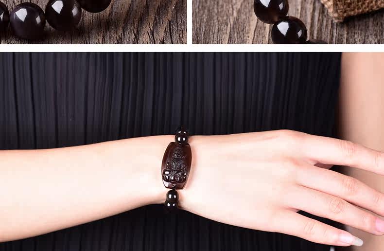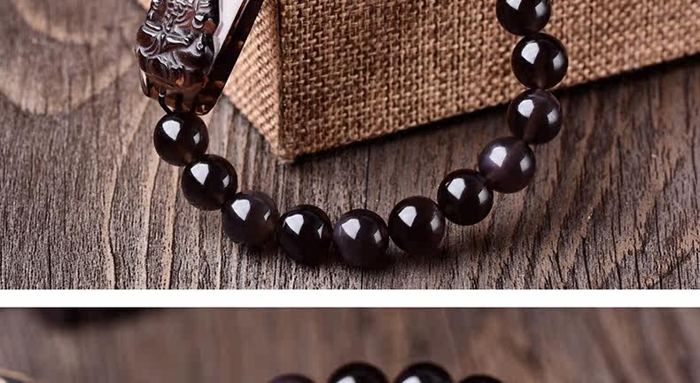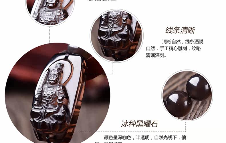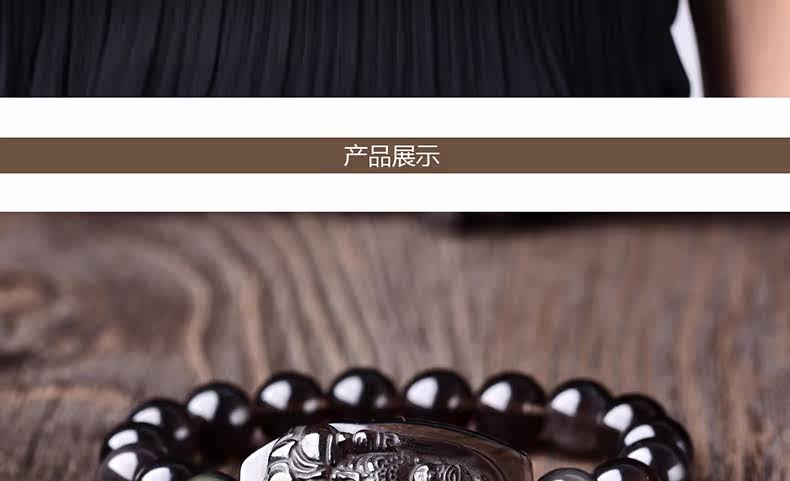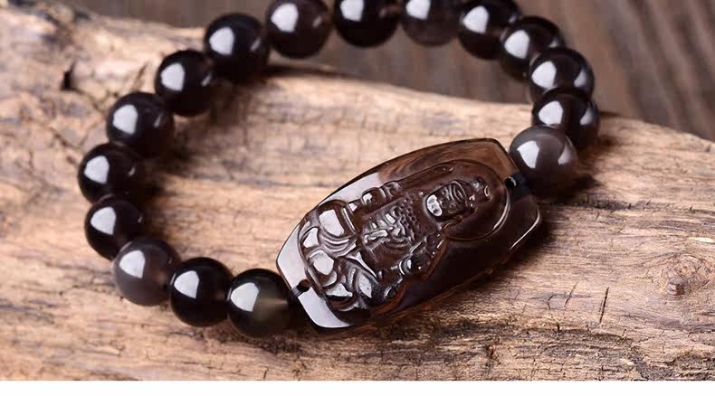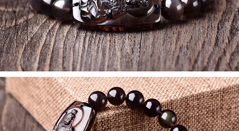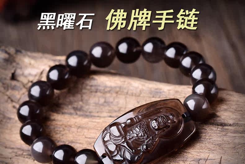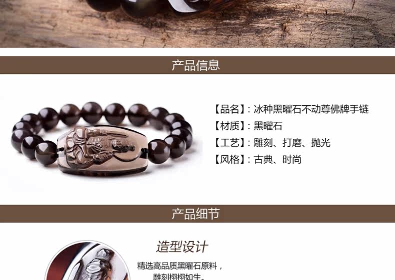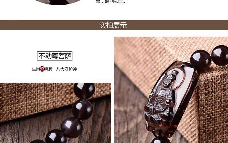 开光天然黑曜石不动明王菩萨手链属鸡本命佛守护神手串