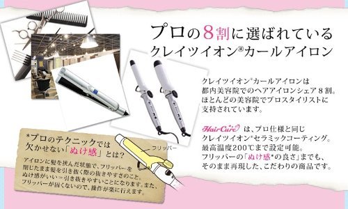 《구레이츠이온》배합 카루 아이런 인기의 32밀리.사용하기 쉽은 심플 구조입니다.손잡이 부분이 프리로 회전하기 때문에 손목을 돌리는 일 없이 간단하게 감을 수 있습니다.5단계 온도 설정은 디지탈식.스위치 온에 약120℃~200℃.프로가 사용 하고 있는 기본 성능을 중시 한 간단 기능으로 억제했습니다.코드의 엉킴을 회피해야 해 회전식 코드를 채용했습니다.억제하의 플리퍼는 업무용크기나와 초심자의 머리카락 억제하도 서포트 합니다.발열 부분은,세라믹 코팅에 미끄러지도 잘 사용하기 쉽다.프로용 헤어아이런(고데기)를 제조한다(주식)《구레이츠》사와의 코라보(콜라보레이션) 제품입니다.1시간의 자동 전원OFF기능 첨부 와