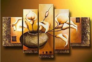 -. Title : Ode-Rin - 100% Hand Painted Oil Painting on Canvas Flowers Bloom in Pot Wood Framed Floral 5 Pieces Wall Art Abstract Painting for Living Room Office Kitchen Home Decoration, Ready to Hang