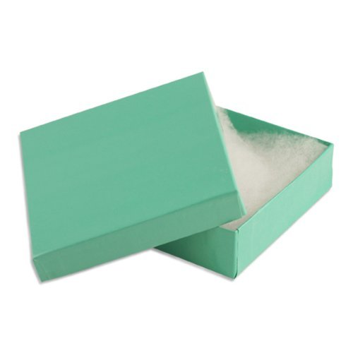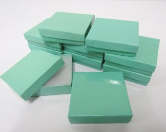 Studio : R J Displays Publisher : R J Displays Binding : Kitchen Product Description 12 Pack Cotton Filled Teal Blue Color Paper Cardboard Jewelry Gift and Retail Boxes 3.5" X 3.5" X 1 Inch Size This sturdy cardboard box with unique Matte Black exterior pattern is essential or jewelry crafters, retail stores, and Etsy sellers to display their small jewelry. This handsome box can also be used as a gift box for your jewelry to further enhance the gift. Each box is lidded and filled with cotton inside to protect contents. Smooth textured outside paper finish. 0