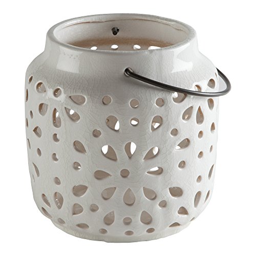 -. Title : Tag 205752 Pierced Lantern Medium, White, 7.68"W X 7.68"L X 7.87"H