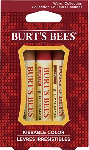 Burt's Bees Kissable Color Lip Shimmer Warm Collection offer an indulgent assortment that features three popular Warm shades, all chosen for everyday use. Peony with a soft orangey, Rhubarb with a bold red hue and Fig with a rich chocolaty hue. These luscious lip shimmers are made with Shea Butter and antioxidant-rich Fruit Oils to moisturize, nourish and soften lips naturally, plus a hint of peppermint oil for a one of kind refreshing tingle. This assortment sets come in a giftable box making them perfect for stocking stuffers. Give a little something to someone special this holiday, with a Burt's Bees Kissable Color Lip Shimmer Assortment, Warm Collection. Durable Product.Feature