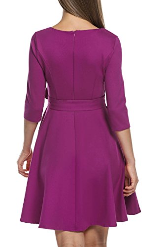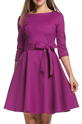 Boat neck and 3/4 sleeve, pleated style, high waist with belt decoration.