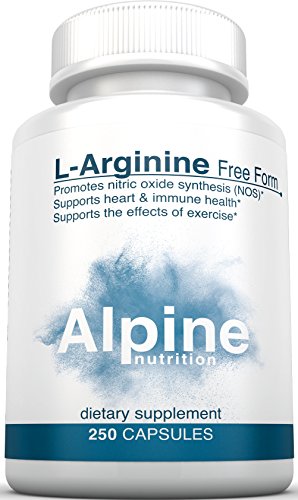 Alpine Nutrition L-Arginine 500mg Free Form - NOS Nitric Oxide Capsules - 250 Capsules