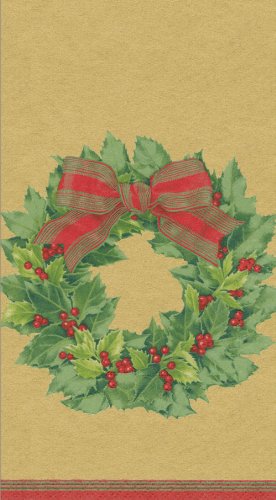 Entertaining with Caspari Guest Towels, Holly Wreath Gold, Pack of 15