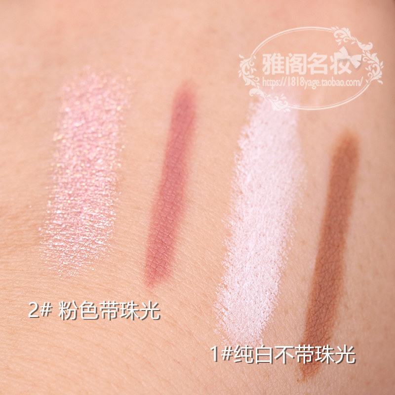 1#哑光纯白膏体+哑光棕色细头:这个色号是不带珠光的,纯纯的白,另外一头也是不带珠光的咖啡色,涂完白色后也将白色用手指匀下,万分自然的卧蚕,素颜超好看的!喜欢珠光闪闪的建议选爱丽小屋的
