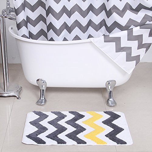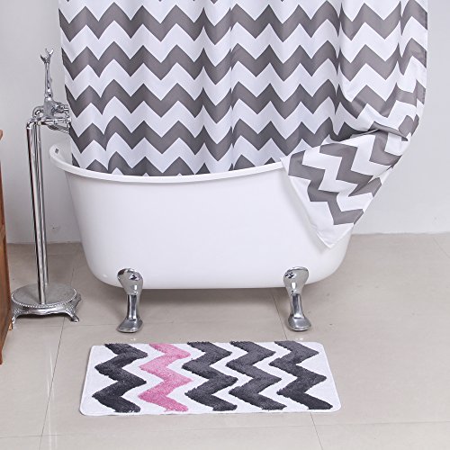 -. Feature : This Uphome elegant bathroom rug features a classic-inspired chevron pattern with white background, which can blend with any existing home decor / Constructed to absorb water quickly, the Uphome Microfiber Rectangular Chevron Rug is a comfortable accent rug for in front of sinks, showers, bath tubs and toilets / Made of 100% microfiber polyester and anti-slip rubber backing / Size: 18"W x 25"L(45 x 65 CM); Machine washable for easy care / This P.R.Ice includes only One piece of Rectangle Bathroom Rug, without shower curtain (if you love the matching shower curtain, you can search it in our store)