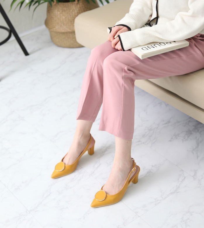 商品名:パンプス レディース ポインテッドトゥ スリングバック 太ヒール チャンキーヒール 2018 夏 ファッション 靴 婦人靴
