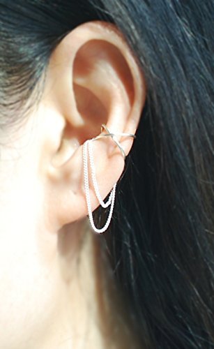 -. Title : 2 Chain Sterling Silver Cross X ear cuff ,No Piercing Cartilage Ear Cuff, Ear Jacket, Ear Wrap / Please select an option.