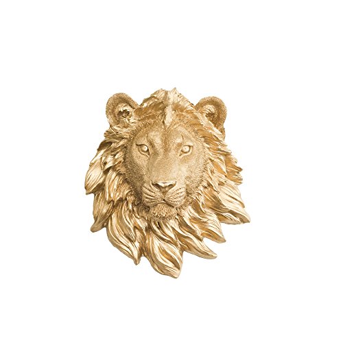 Wall Charmers Lion Mini in Gold - Faux Head Bust Mounted Fauxidermy Decorative Fake Resin Animal Replica Mount Taxidermy Decor Art