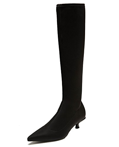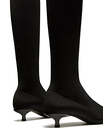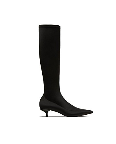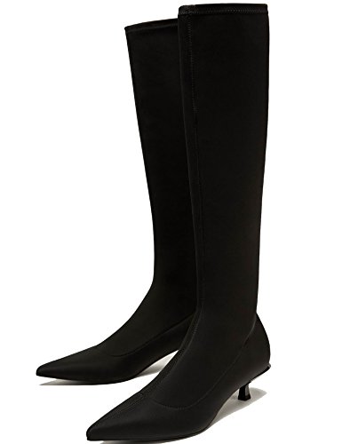 Product Description Tall black boots. Featuring stretch fabric on the upper. Pointed toes. Ombre heels. Heel height of 4.3 cm. / 1.6 inches Official brand size equivalence for Women Shoes. Size 35 | USA 5 ? ?|?UK 2 Size 36 | USA 6 ? ?|?UK 3? Size 37 | USA 6.5 |?UK 4? Size 38 | USA 7.5 |?UK 5? Size 39 | USA 8 ? ?|?UK 6 Size 40 | USA 9 ? ?|?UK 7? Size 41 | USA 10 ?|?UK 8? Size 42 | USA 11 ?|?UK 9? Size 43 | USA 12 ?|?UK 10 0