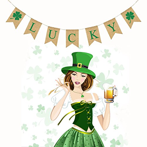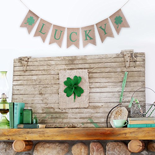 -. Title : St Patrick's Day Decorations,St.Patrick's Day Banner LUCKY Irish Shamrock Burlap Banners (St Patrick's)