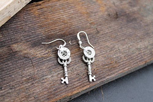 -. Title : 9mm Luger Rustic Key Charm Fish Hook Style Earrings
