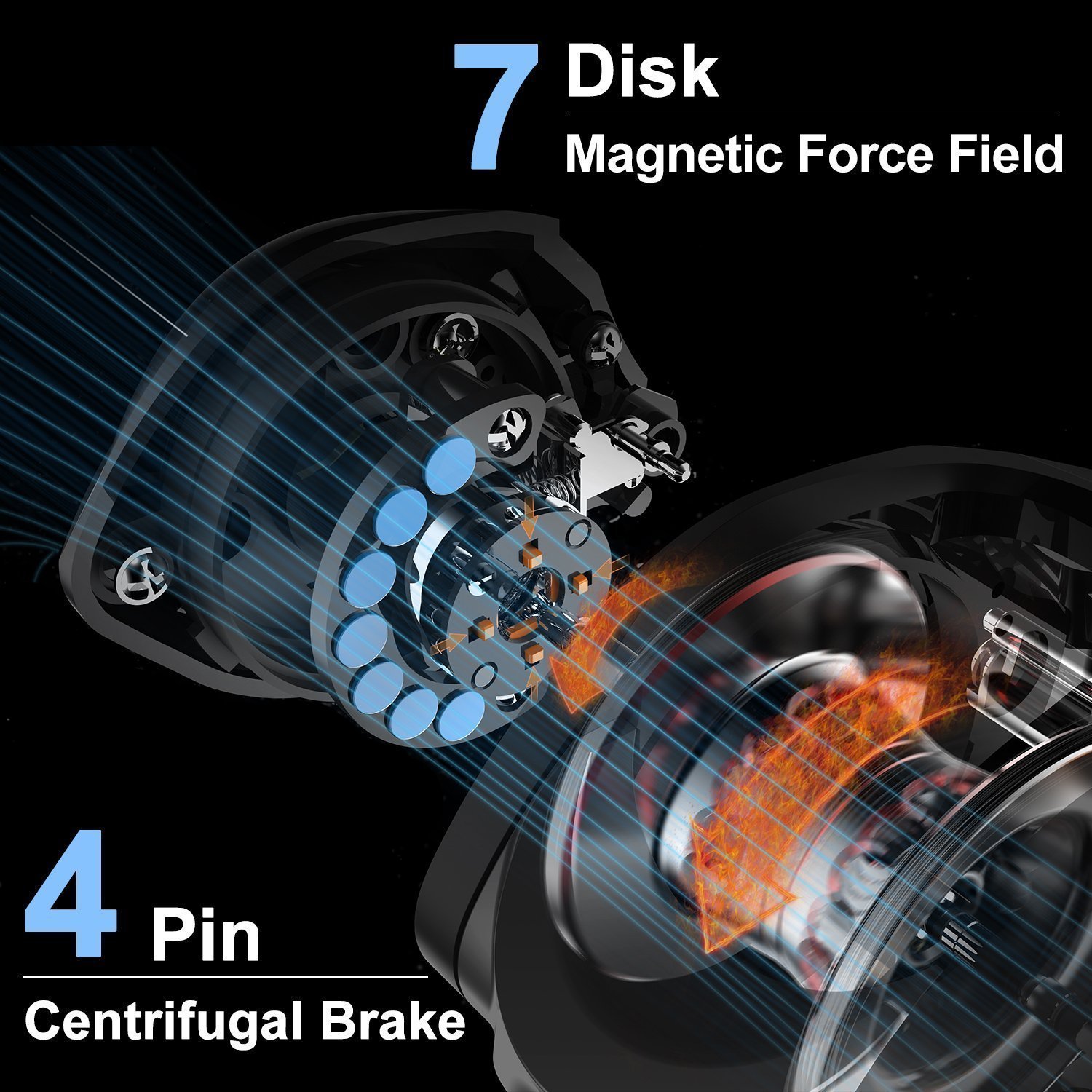 - Brake: 7 magnet brakes (side panel dial) + 4 pin shaft resistance brake (inside cover)