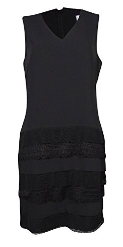 Calvin Klein Women's Tired Mesh Lace Hem V-Neck Dress
